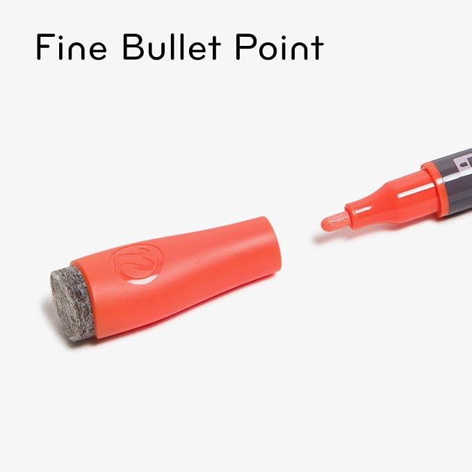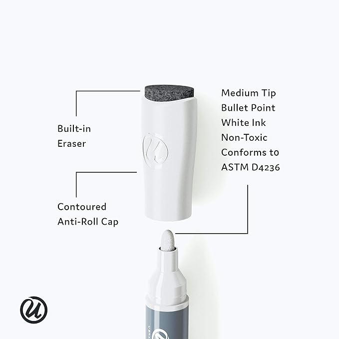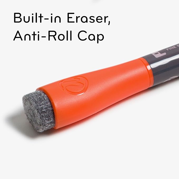 - QUICK CORRECTION CAP: Make corrections a breeze with the built-in felt erasers on the caps that allow for clean erasing without residue; featuring a contoured anti-roll cap shape, which prevents the markers from rolling off any flat surface or tray
