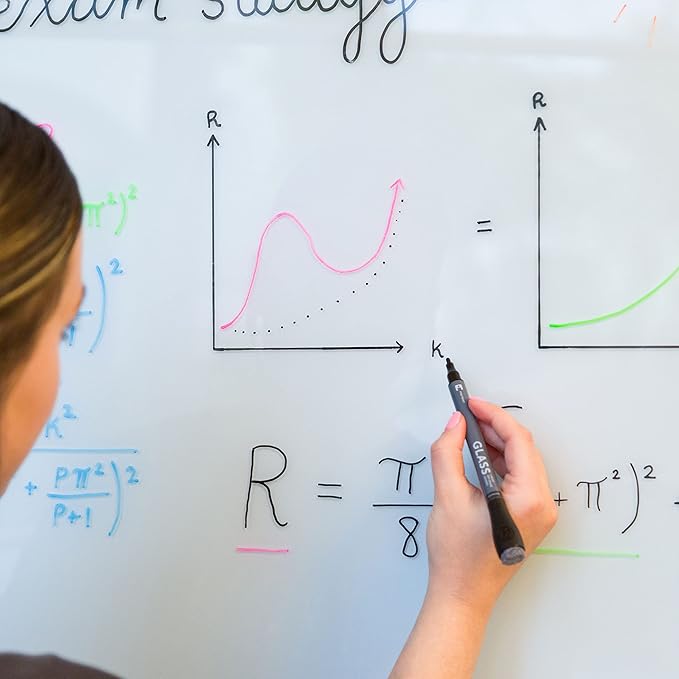 - VIBRANT COLORS: Set of 12 liquid glass fine tip white board markers with 3 mm point tips and built-in erasers in 12 assorted low odor colors; bold color laydown perfect fine point dry erase markers for kids, home, office, or classroom use