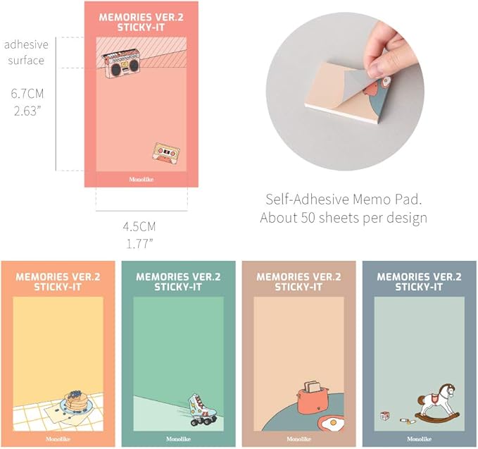 Monolike Memories Ver.2 Sticky-it - 5p Set Self-Adhesive Memo Pad 50 Sheets