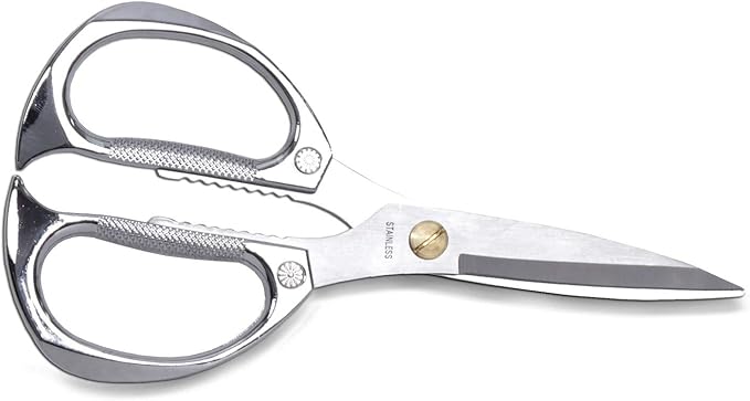 7.5in Stainless Steel Kitchen Scissors, Heavy Duty Shears for Chicken, Meat, Food, Vegetables, BBQ (Silver)