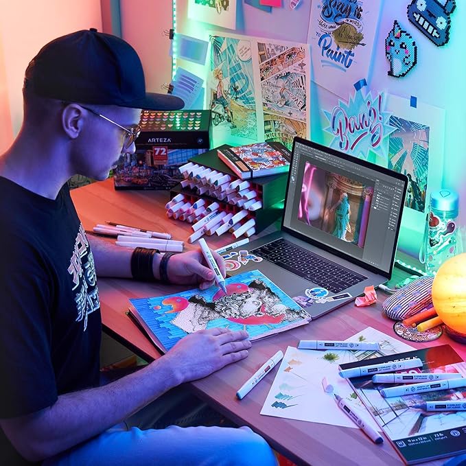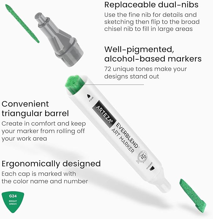 - Highly Pigmented – 72 rich, alcohol-based art markers with vibrant colors and a clear blender marker make the perfect set for shading, layering, freestyling, and blending.