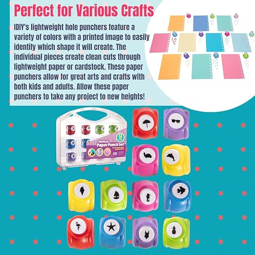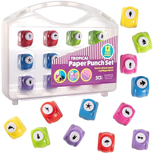 Scrapbook Paper Punchers 12 Unique Tropical Vacation Beach Hole Punchers-Scrapbooking Supplies Kit & Accessories, DIY Card Making, Summer Camp Arts & Crafts, School Projects for Kid & Adult, Gift
