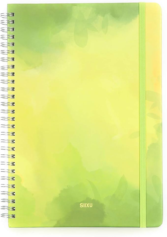 SIIXU Spiral Journals for Writing, Color Illustration Notebook With an Elastic Band, Hardcover, 128 Pages, B5, 6.8”x9.8”, Spring