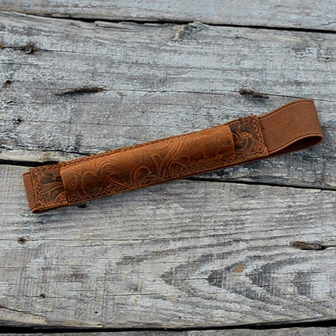 JJNUSA Genuine Leather Pen Case Holder Fits (4 to 6.5 in) Tall Notebooks Pencil Sleeve Cover Pen Pouch Pen Holster Handmade Flower Brown