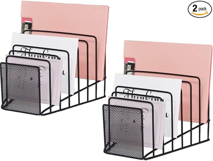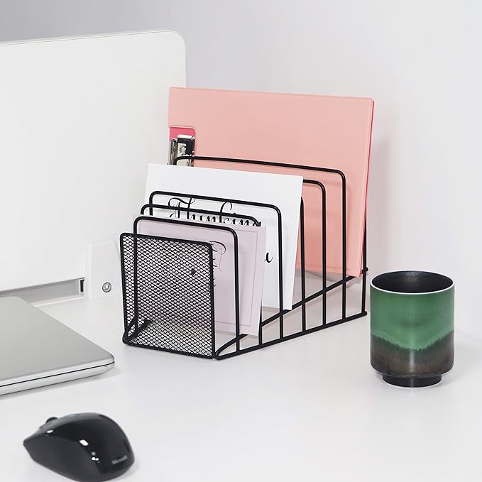 - [Durable Construction and Better Material ] - This paper tray organizer file sorter 7-section incline desktop file organizer is made of high-quality wire mesh which is both durable and strong. The mesh finish gives it an elegant look and the ABS coating which makes the file holders for desk durable and sturdy.