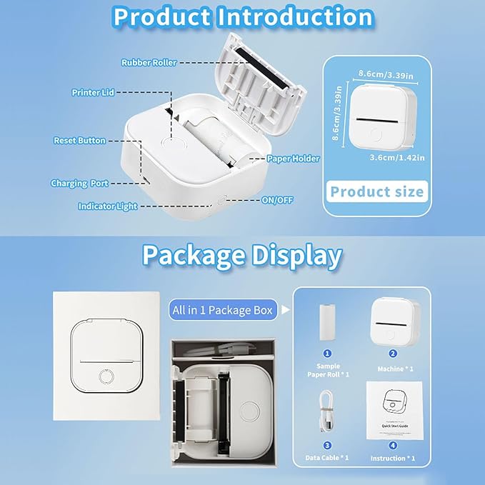 - Important Precaution: 1. Please connect Bluetooth from APP. 2. No paper alert: although there are papers in the machine, it still shows "not paper". Solution: take the paper roll out, then long press the power button for 10 seconds until you see green light flashes 2 times. After that, put that paper into the machine again to print normally. 3. The printed content is easy to shift without the paper holder