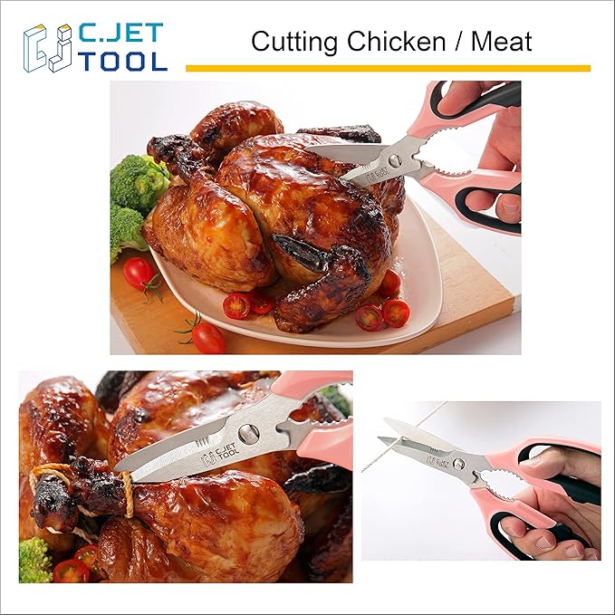 - 【Versatile Kitchen & Household Scissors】: Robust enough for heavy-duty home tasks. Effortlessly chop poultry, chicken bones, meat, herbs and vegetables, or tackle packaging and craft projects with these all-purpose kitchen scissors. Easily disassembles for thorough cleaning, removing trapped food particles from the pivot.