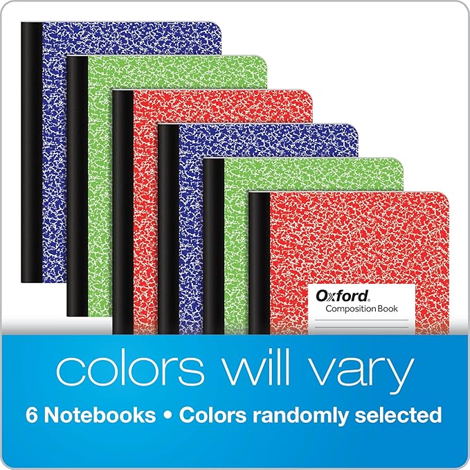 Oxford Composition Notebooks, 6 Pack, Cover Colors Vary, Wide Ruled Paper, 9-3/4 x 7-1/2 Inch School Journals, Assorted Marble Covers, 100 Sheets, per Book (63762)