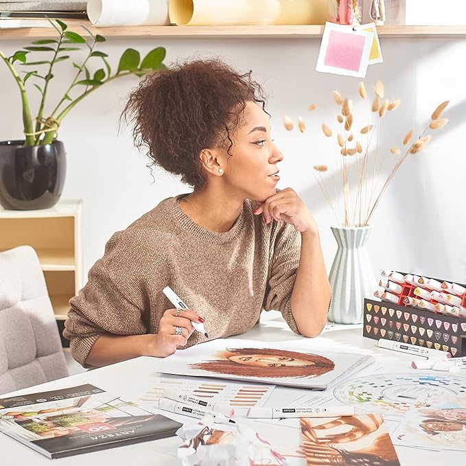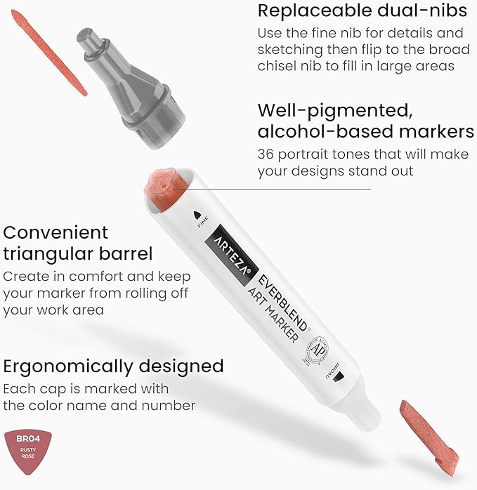 ARTEZA Alcohol Markers – Set of 36 Portrait & Skin Tone EverBlend Dual Tip Markers with Fine and Chisel Nibs and Organizer Box for Drawing