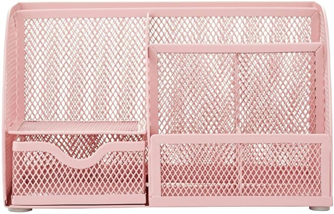 Annova Mesh Desk Organizer Office with 7 Compartments + Drawer/Desk Tidy Candy/Pen Holder/Multifunctional Organizer (Light Pink)