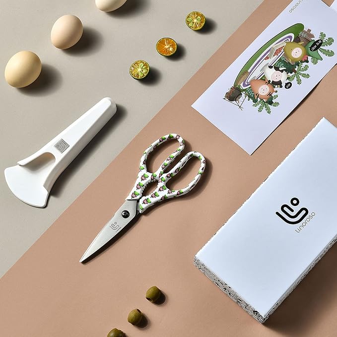 Linoroso Kitchen Scissors Heavy Duty Kitchen Shears with Magnetic Holder Made with Japanese Steel 4034, Multipurpose Ultra Sharp Cooking Scissors for Meat/Vegetables/BBQ/Herbs/Pizza (Graphic,Chili)