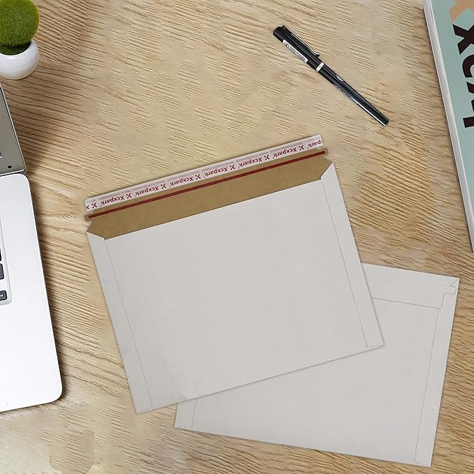 - Increase weight and thickness Each White10X13.5 inches Rigid Mailers made of thick cardboard weighs 96/1000 pounds.This means it features exceptional rip, tear and puncture resistance, made to last. Friendly reminder: Our Rigid Mailers are heavy, please remember to calculate its weight when you mail, so as not to pay extra postage. But if you like the sturdy Rigid Mailers, it is undoubtedly the best choice.