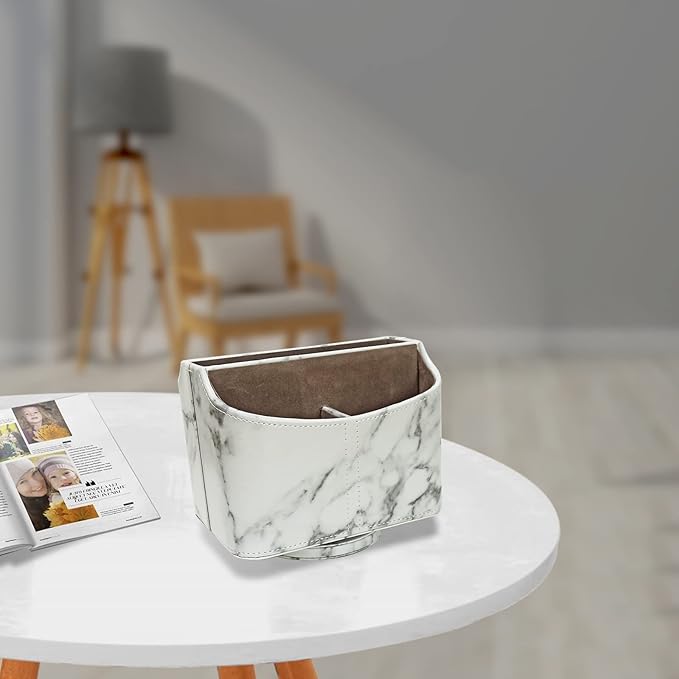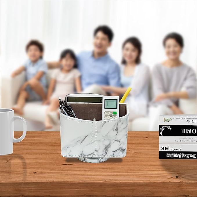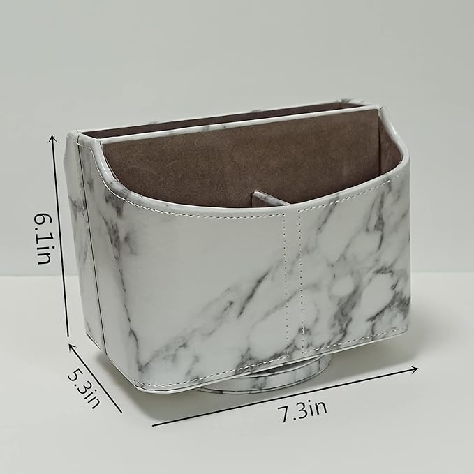 PU Leather Remote Control Holder 360 Degree Rotating Desk Organizer/Caddy Storage Box for Remote Controllers,TV Guide, Mail, Electronics,Pen,Stationery and Media Storage white