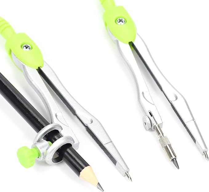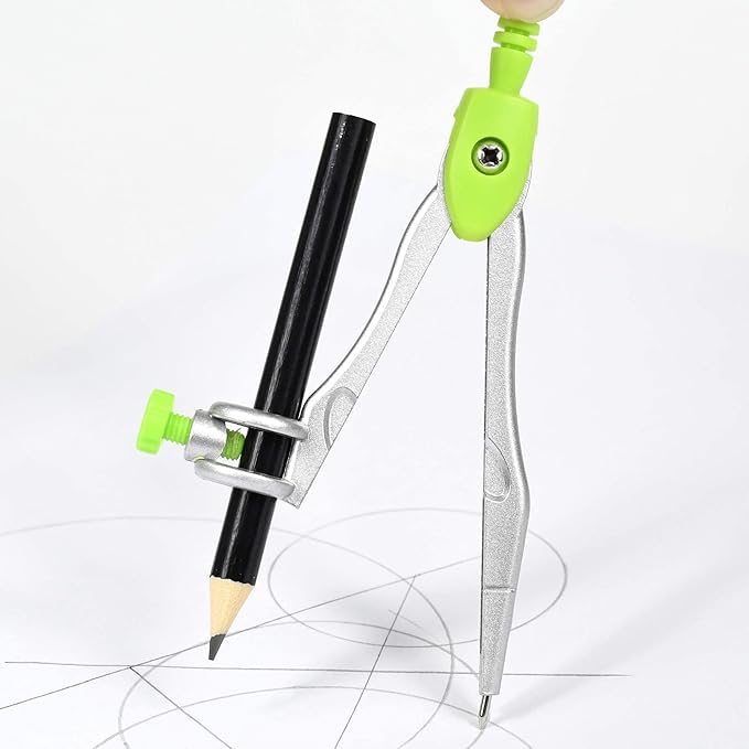 - A Practical Compass Geometry Set: Metal compasses will not bend, Ergonomically designed compass head is comfortable to hold, Universal Holder Compass work with any standard sized pencil or pen