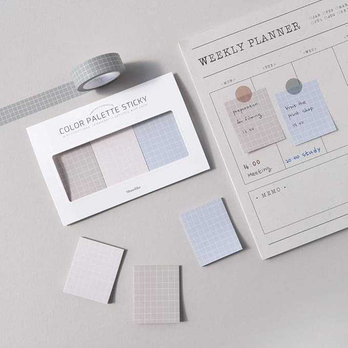 Monolike Color Palette Sticky Grid 300 B Set 4p - Self-Adhesive Memo Pad 30 Sheets