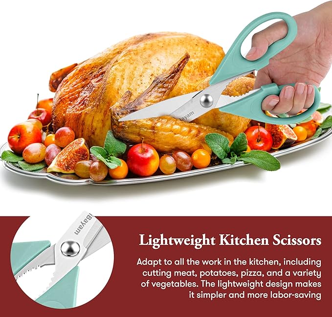 Kitchen Shears, iBayam Kitchen Scissors All Purpose Heavy Duty Meat Poultry Shears, Dishwasher Safe Food Cooking Stainless Steel Utility Scissors, Home Apartment Essentials, 2-Pack, Black, Aqua Sky