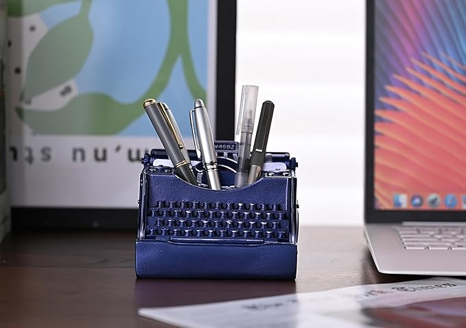 - FANTASTIC GIFT: This retro typewriter pen holder for desk with fantastic shape, looks great on desk ornament for writer's. Perfect as Company prize, Birthday, Christmas, Children's Day Gifts. Suitable for offices, study and living room etc.