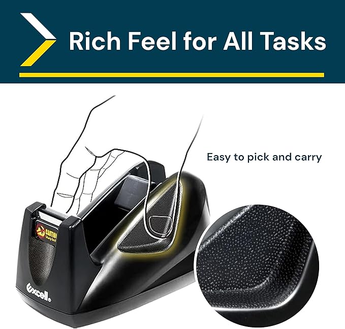- ❰Steady and Secure❱ Our tape dispenser, crafted from durable plastic, features a weighted base for a non-skid grip on your desk. Experience steady and secure tape dispensing, eliminating slips and frustration.