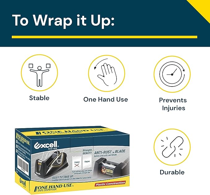 Excell - Desk Tape Non-Skid Base Dispenser 3pc, 3/4" Wide, 1" Core, Durable Plastic Tape Holder, Heavy Duty Tape Dispenser, Weighted Tape Dispenser for Desk, Easy One Hand Use, 1 inch Tape Dispenser