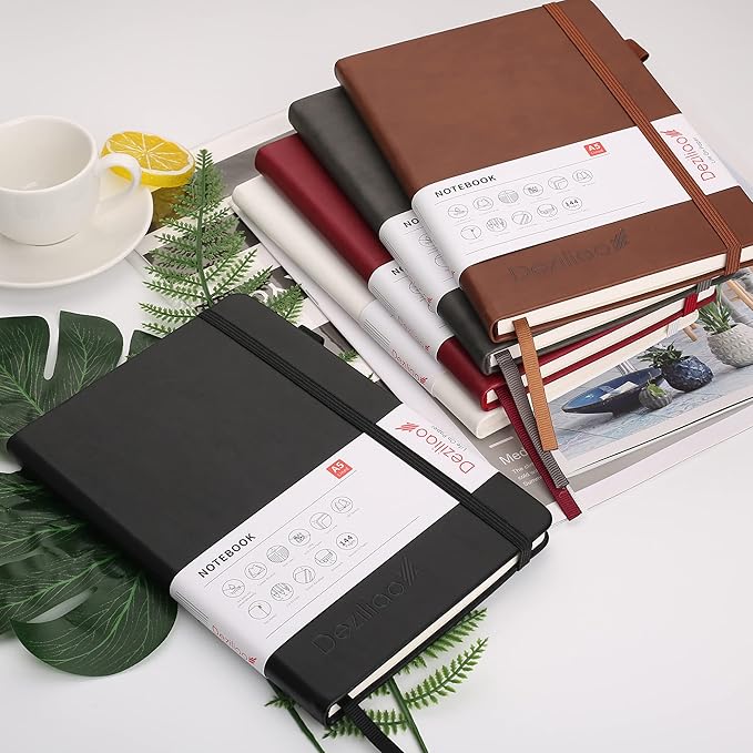 Deziliao Lined Journal Notebooks with Pen Loop, Hardcover Notebook Journal for Work, 100Gsm Premium Thick Paper with Inner Pocket, Medium 5.7"x8.4", (Black, Ruled)
