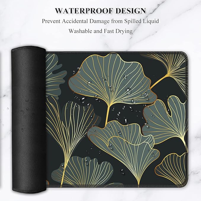 Auhoahsil Extended Mouse Pad, XXL Gaming Mouse Pads, Large Big Mousepad Laptop Computer Keyboard Mat Desk Pad with Non-Slip Base Stitched Edge for Gaming Office, 35.5 x 15.7 inch, Gold Line Leaves