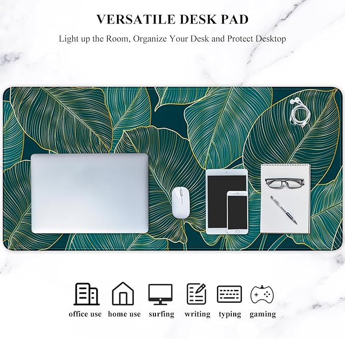 Auhoahsil Desk Mat, Ultra Large Mouse Pad, XXL Gaming Mousepad, Green Tropical Leaves Deskpad, Big Extended Full Size Mouse Pad, Desktop Desk Matt for Keyboard, Laptop & Computer, 35.5 x 15.7 in