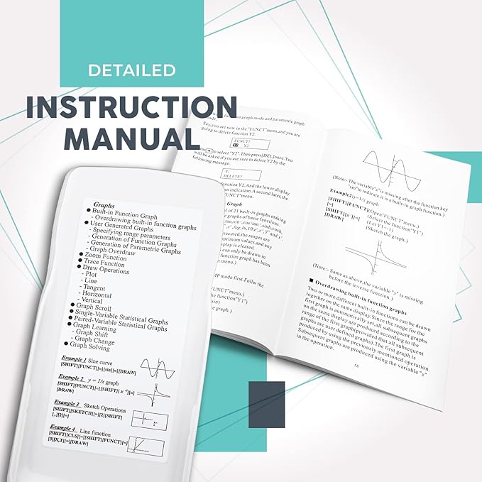 - 【Scientific Calculator with Graphic Function】This is a scientific calculator that can display charts of formulas. It has a screen large enough to display diagrams and equations at the same time, allowing you to view calculations and corrections in detail. The size 7 x 3.3 ensures comfortable operation.