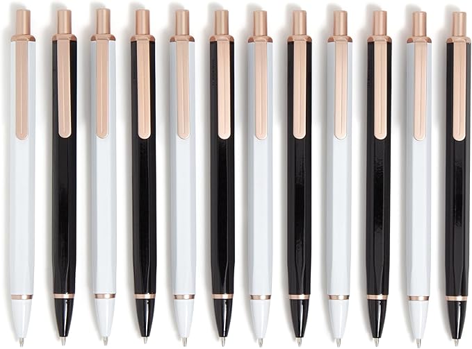 U Brands Cambria Mechanical Pencils, Set of 12, White and Black, Rose Gold Details, Medium (0.7 mm) Point, Lead and Eraser Refills