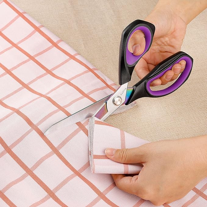 Professional Fabric Scissors, Heavy Duty Titanium Coating Sewing Scissors, Ultra-Sharp Blade Fabric Shear, Ergonomic Rubber Handle, Great for Craft, Sewing, Leather Tailor, 9.4”, Black/Purple
