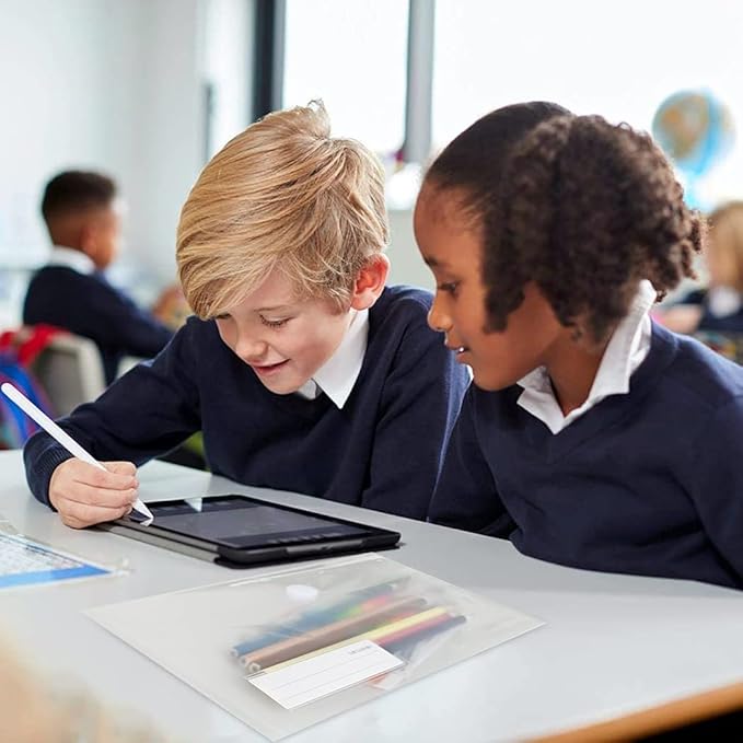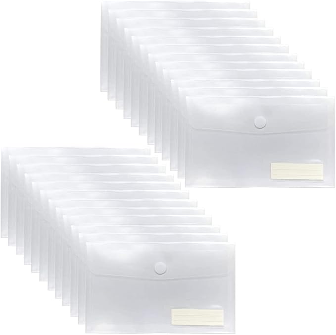 - Plastic Envelopes with a mini label pocket for labels to classify and identify documents easily