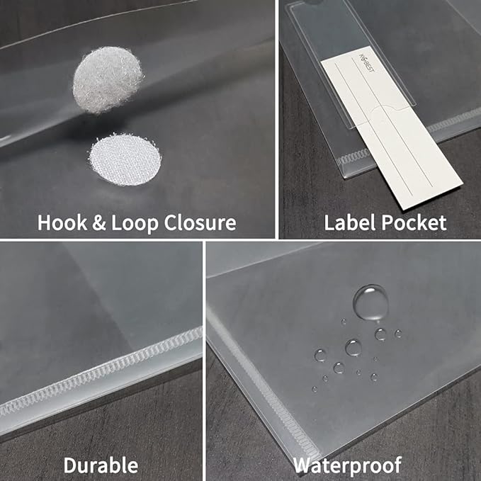 YoeeJob Plastic Envelopes with Hook & Loop Closure, 6x10 Receipt Envelope Money Cash Coupon Organization with Label Pocket, 24 Packs