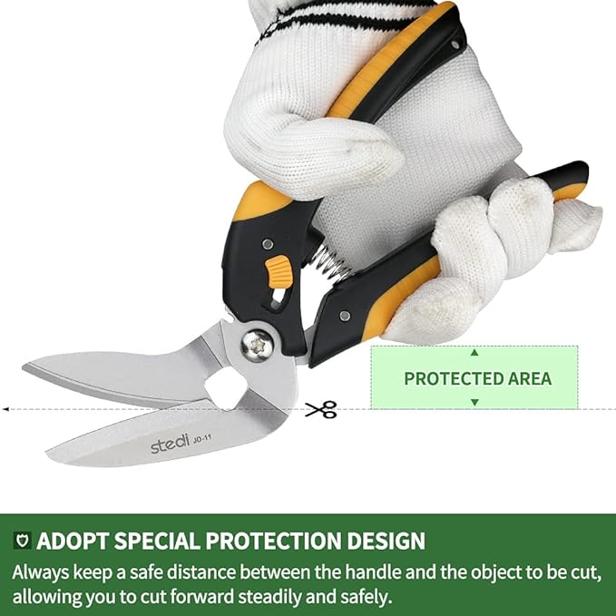 - STRONG & DURABLE 420J2 STAINLESS STEEL – Stedi JD-11 multipurpose shears for cutting Cardboard and Carpet is made of 420J2 stainless steel, which is high hardness, wear resistance and corrosion resistance, that makes it have excellent performance easy to cut thick paper, corrugated cardboard, leather, and other thick stuff, At the same time, the spring also helps with the amount of pressure needed to use the cutters.