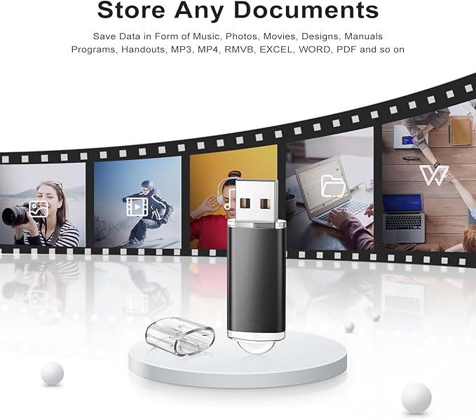 - [Multi-Format Supported] The thumb drives can be used for sharing, transferring, and storing digital data. Save data as MP3, MP4, RMVB, Excel, Word, PDF, and other formats for use in music, pictures, movies, designs, manuals, programs, and handouts