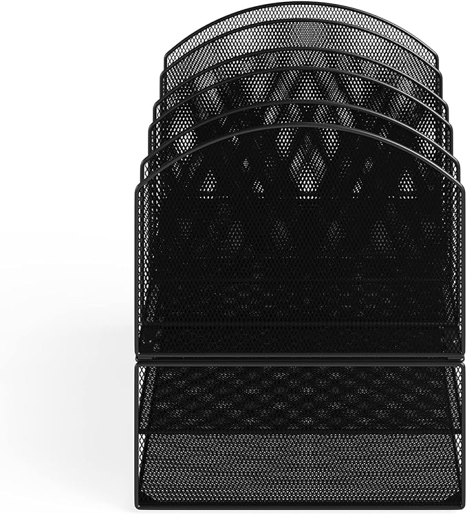 Safco Products Onyx Desk Organizer - 2 Horizontal, 6 Upright Sections - Black - Metal - Tabletop Desktop Organizer - Office & School Supplies - Letter Trays & Stacking Supports