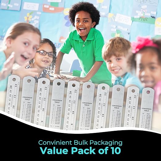 - Superb Value For Money - The set includes 10 professional grade 12 inch / 30cm stainless steel rulers with centimeters and inches. This bulk pack is suitable for crafting, drafting and architectural projects, and woodworking.