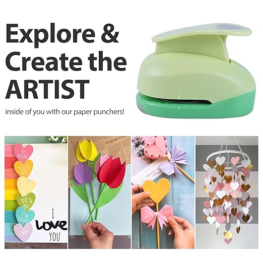 - Easy to Use : The 2 inch hole punch with spring-action lever makes the craft circle punch easier and comfortable to use, easy get heart shape from card-stock, punches cleanly every time for consistently great designs
