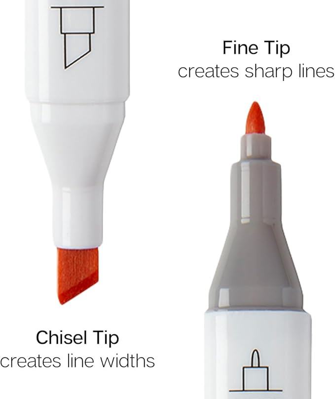 - DOUBLE-ENDED - Chisel tip for broad strokes and filling areas and a Fine Point tip for precise lines and details. Great for illustration, design, lettering, manga, animae, scrapbooking and any creative project, a single reservoir ensures consistent color and easy, effortless ink flow. Thick square barrels with soft corners provide a comfortable, secure grip and won't roll on your work surface.