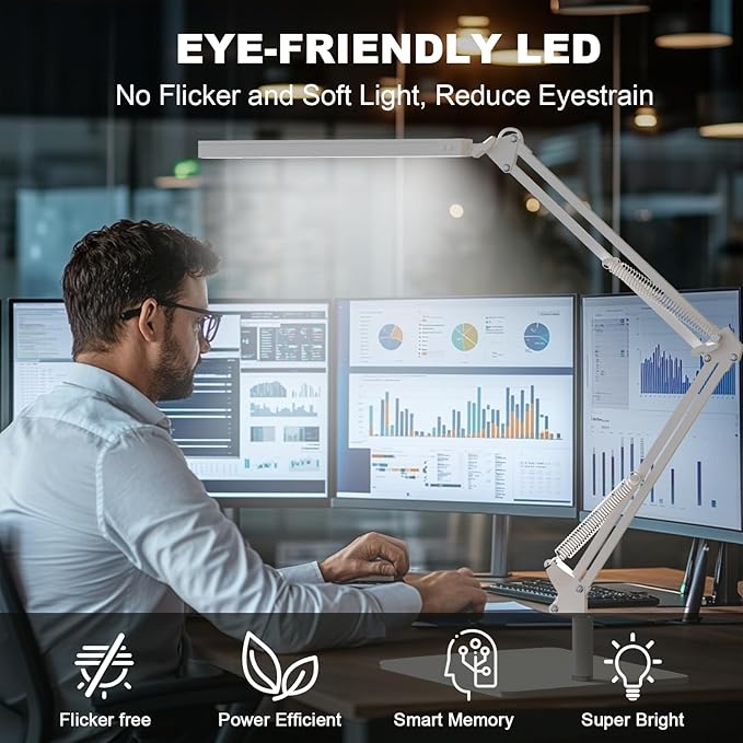 - 【10 Brightness Eye-Caring & 3 Color Temperature】Long arm lamp provides Dimming Design (from 3200K to 6500K). Its light is very uniform, can prevent blue light damage to the eyes. This lamp is suitable for all ages, no matter the children or grandparents, easily protect your family's eyes.