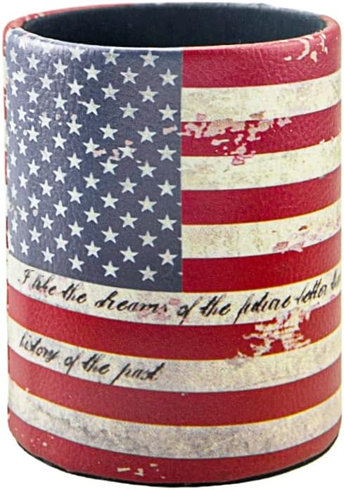 Pen Pencil Holder Cup Container PU Leather Desk Organizer Stand Decor Brush Scissor Holder Decoration Office Desk Home School (3.3" x 3.3" x 4", US Flag)