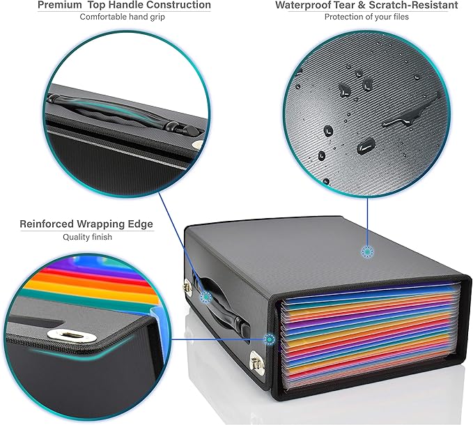 - 24 Individual Pockets with Colorful stylish design are tabbed to allow for adding handwritten labels, ensuring each section can be instantly identified for quick access.