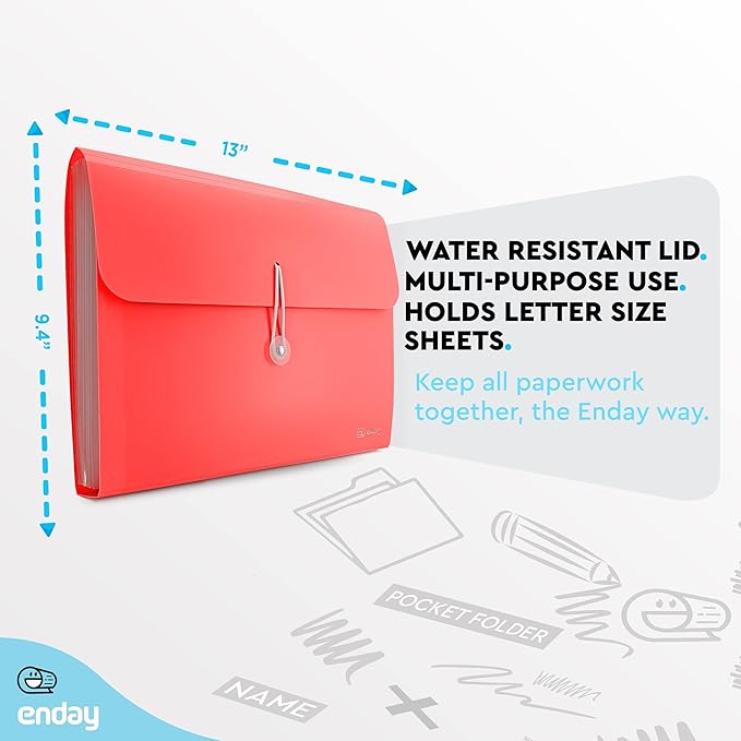 Accordion File Organizer 13 Pocket Expanding File Folder with Labels, Accordion File Organizer Letter Size Letter A4 Paper for Receipts, Bills and Documents 13" x 9.5” –by Enday