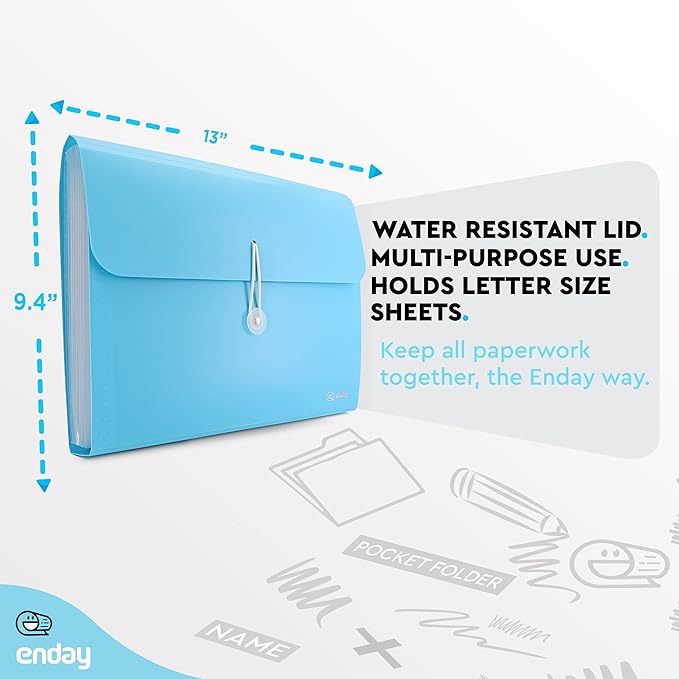 Accordion File Organizer 13 Pocket Expanding File Folder with Labels, Accordion File Organizer Letter Size Letter A4 Paper for Receipts, Bills and Documents 13" x 9.5” –by Enday