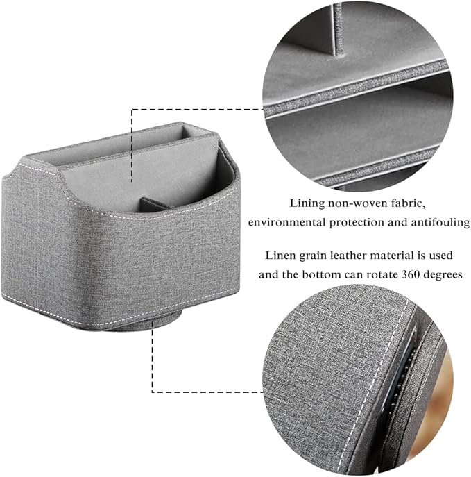 Leather Remote Control Holder 360 Degree Spinning, Desk Organizer for TV Remote Controllers, Caddy,Pen,Calculator,Media Player Storage box (Grey)