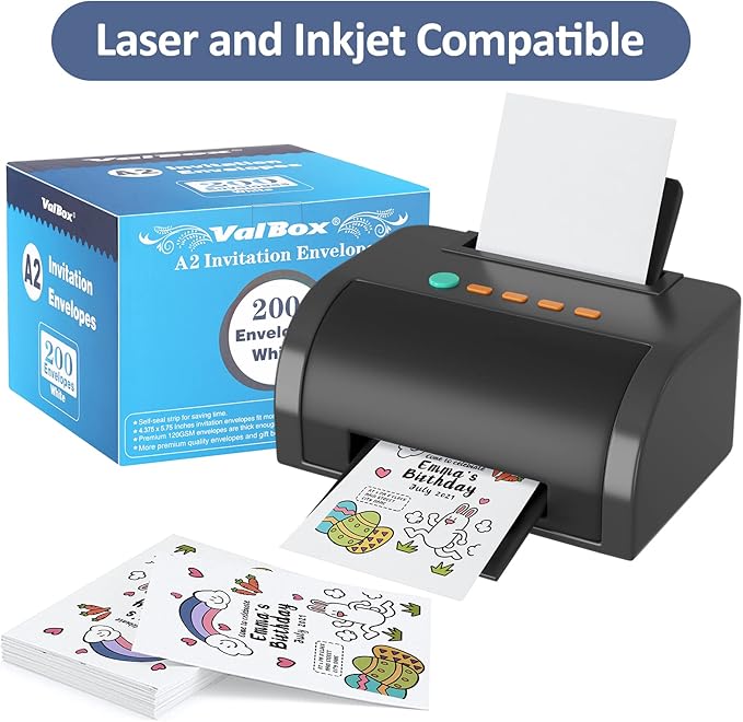 - 【Printer Friendly】Print with your Laser and Inkjet Printers on our A2 greeting card envelopes. Perfect size and weight, never worry about smudging or having the envelopes engulfed by your printer.