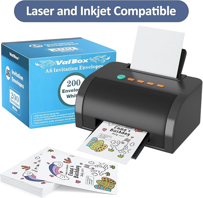 - 【Printer Friendly】Print with your Laser and Inkjet Printers on our A6 greeting card envelopes. Perfect size and weight, never worry about smudging or having the envelopes engulfed by your printer.