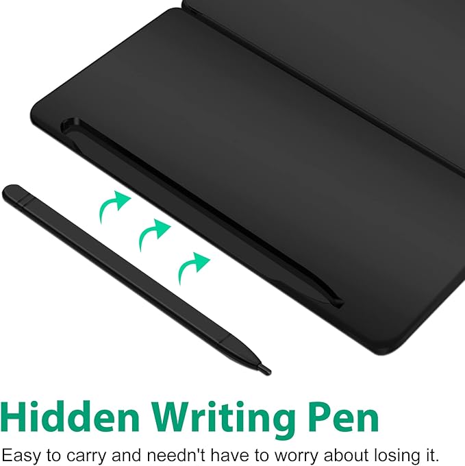 - Mute & One-key Erase: This calculator uses silicone buttons to keep silent during use. There is a button at the bottom of the writing tablet to clear the screen.