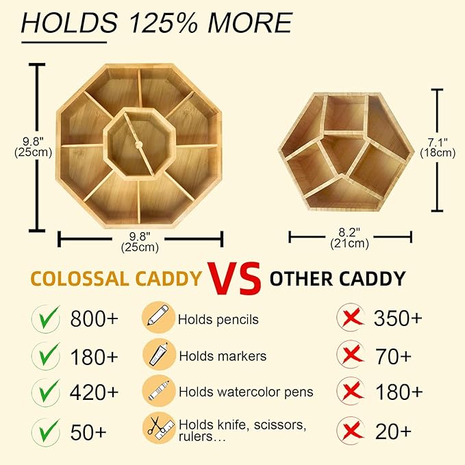- BAMBOO PRODUCT - You will like the natural bamboo design. With its natural color and beautiful texture design, the rotating caddy fits for different style of decor. Also, available stained or painted if you prefer to.