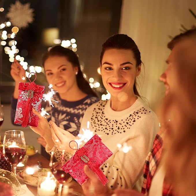 - Package Include:The package include 12 silk red envelope,each vertical envelope measures about 6.89 x 3.93 inches; Each horizontal envelope measures about 6.89 x 4.52 inches; They are equipped with Chinese elements, such as Chinese knot, jade pendant and copper coin; You can use them to hold lucky money or greeting cards.