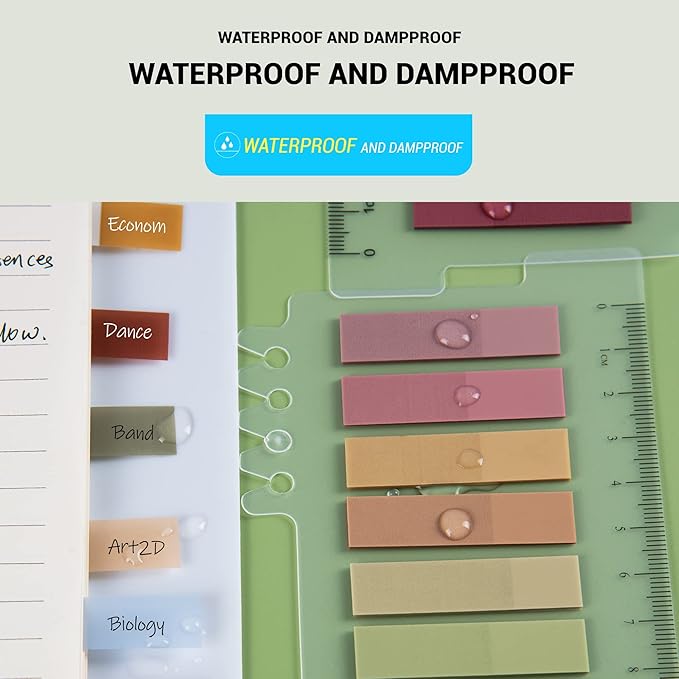 - [OPERATION] Easy to extract, sticky tabs used to draw attention to key items and organize files, and the color part can be used as a code or index label.The PVC bottom card is waterproof with grooves, and can be inserted into a binder with 6 holes or 8 holes.