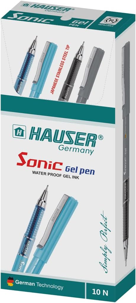- Package Includes - Hauser Sonic Gel Pen | Tip Size - 0.5 Mm | Material - Plastic | Ink Color - Blue | Body Color - Blue | Set Of 10.